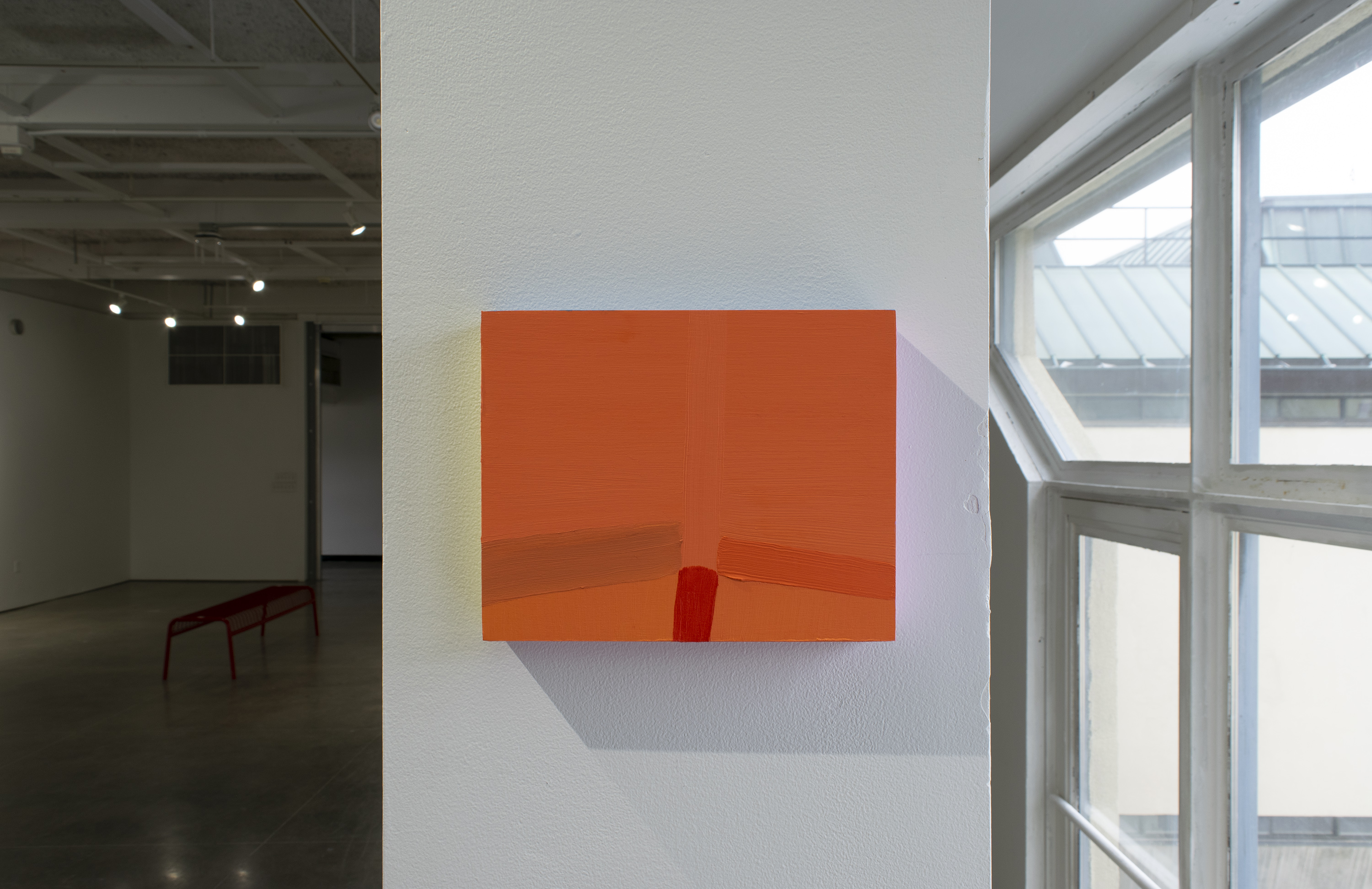 This exhibition transforms the space of the gallery into a grid, organizing viewer and object in its panoptic system. My paintings are gates to enter this system and look around. They are invitations to rebody. As we move in relation to the works, we expand the grid beyond the picture plane, revealing the affective relationships between viewer and object. The gaps between the positions on the grid are sites of tension between mutability and stasis, self and object. We learn to see ourselves differently and be ourselves differently. This is the grid’s affective power.